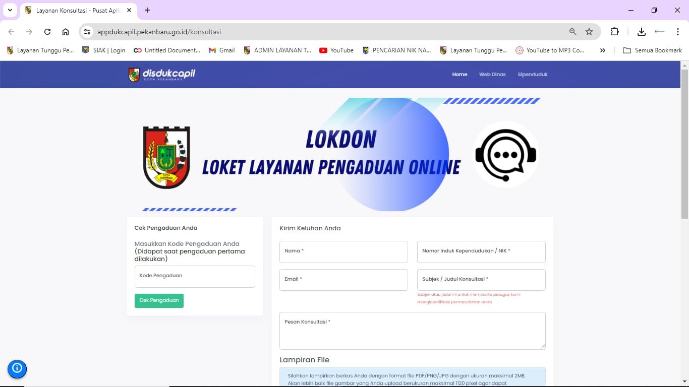 Ayobaca.id, Pekanbaru - Masyarakat Kota Pekanbaru tidak perlu khawatir terkait permasalahan yang berhubungan dengan administrasi kependudukan. Dinas Kependudukan dan Pencatatan Sipil (Disdukcapil) Kota Pekanbaru, kini punya layanan pengaduan terbaru. Layanan ini diberi nama Loket Layanan Pengaduan Online (Lokdon).