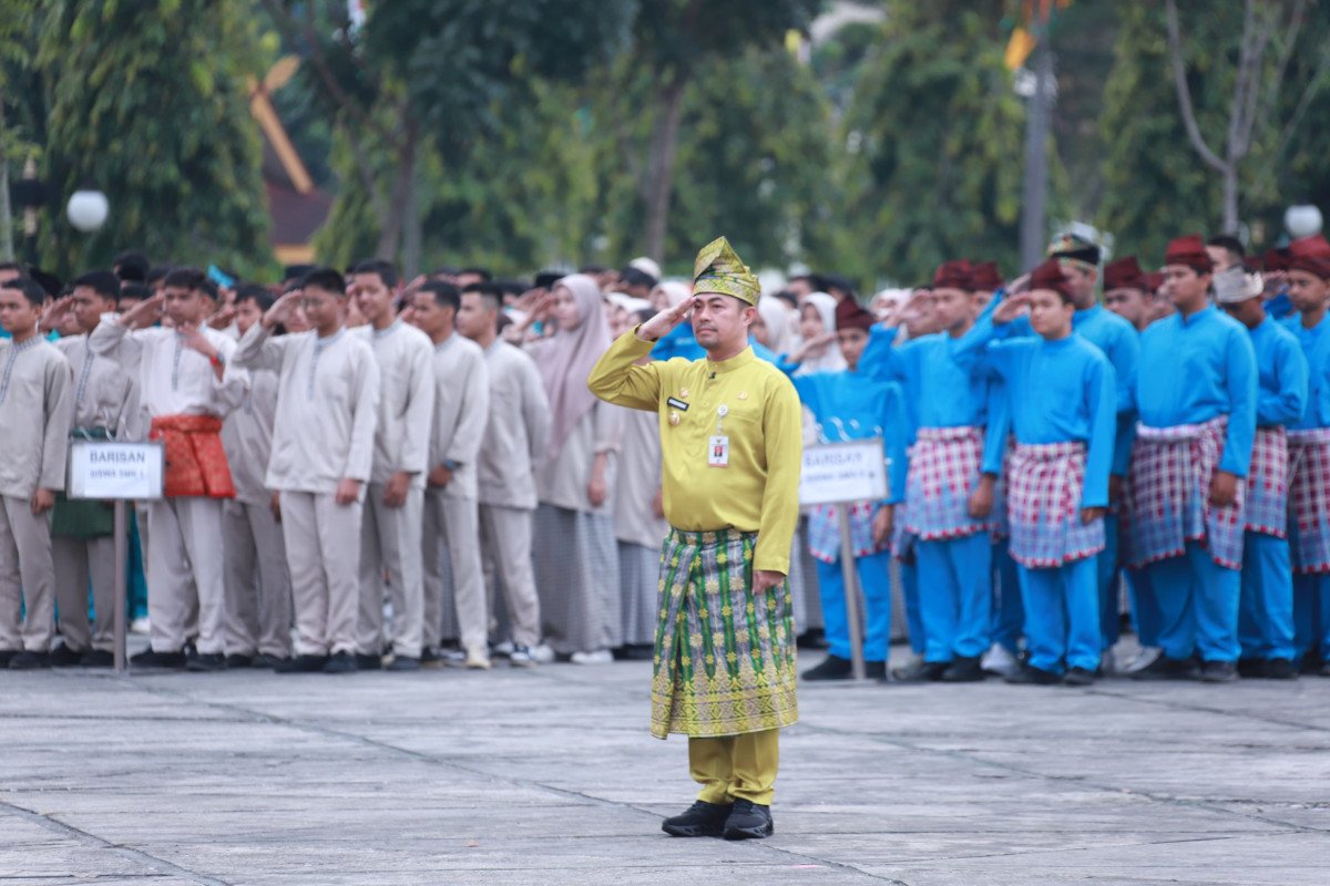 Ayobaca.id, Pekanbaru - Penjabat (Pj) Gubernur Riau SF Hariyanto menjadi inspektur upacara Hari Ulang Tahun (HUT) Ke-67 Provinsi Riau di Halaman Kantor Gubernur, Jumat (9/8/2024).
