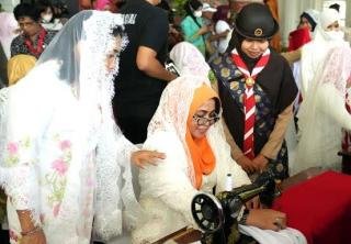 Misnarni Syamsuar Menjahit Bendera Merah Putih, Mengenang Ibu Fatmawati Soekarno pada Peringatan Hari Ibu di Bengkulu