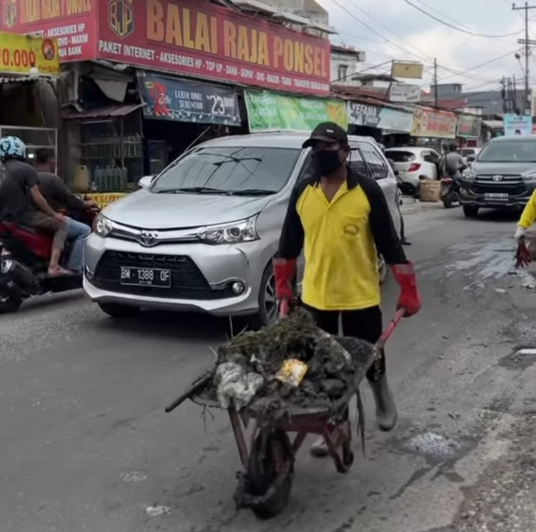 Dinas PUPR Pekanbaru Bersihkan Sampah yang Menumpuk di Drainase Jalan Pepaya